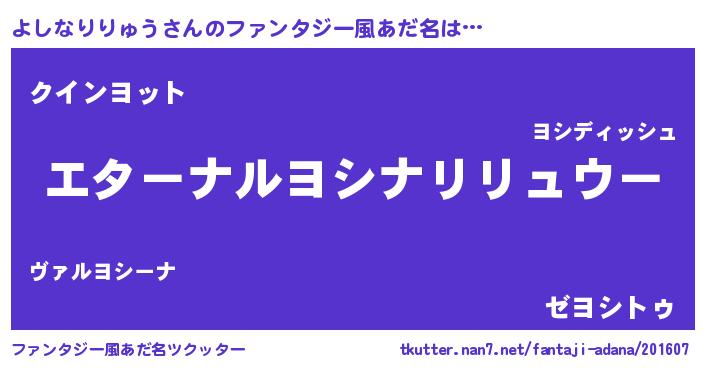 | 女子向けラノベタイトル風あだ名 | 『よしなりりゅうの婚約者』 |