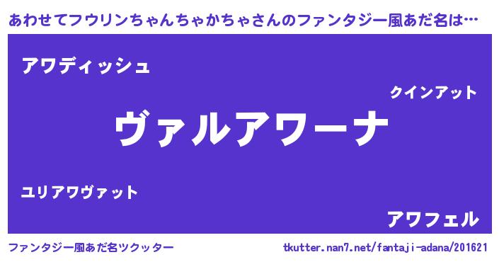 | 伝説のあだ名 | 『古文書に記された勇者あわせてフウリンちゃんちゃかちゃ』 |