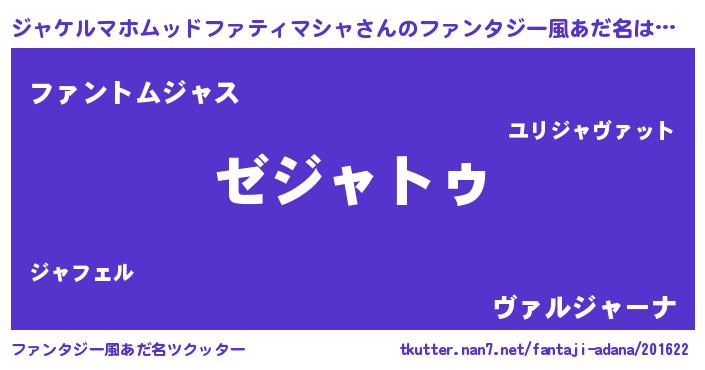 | 女子向けラノベタイトル風あだ名 | 『ジャケルマホムッドファティマシャなんてお断りですっ。』 |