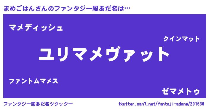 | 男性向けラノベタイトル風あだ名 | 『転生したらまめごはんだった件』 |