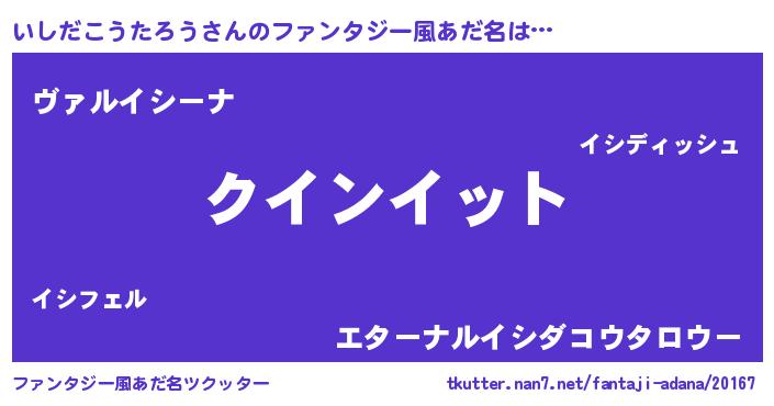 | 男性向けラノベタイトル風あだ名 | 『ノーゲーム・ノーイシダコウタロウ』 |