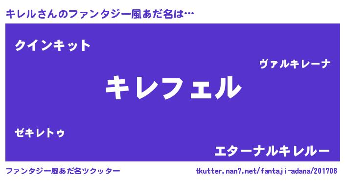 | ヒーロー風カッコイイあだ名 | 『スーパーキレル』『正義の使者キレル』 |