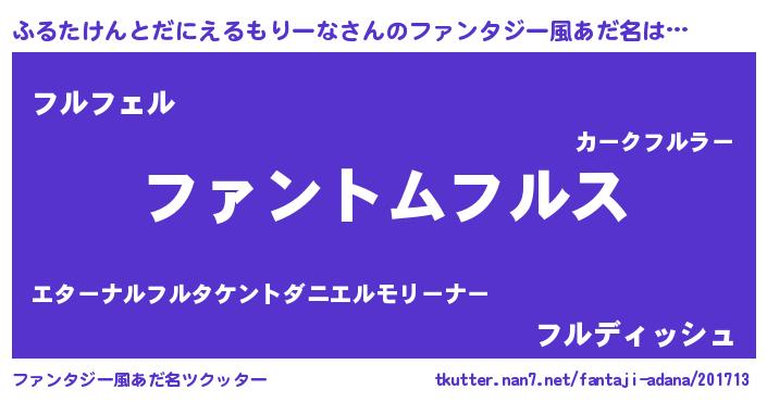 | 男性向けラノベタイトル風あだ名 | 『ダンジョンにふるたけんとだにえるもりーなを求めるのは間違っているだろうか』 |