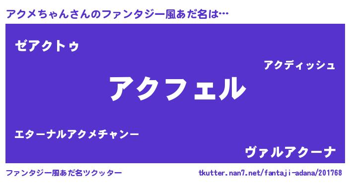 | ヘコむあだ名 | 『アクにゅー』『アクメちゃん(震え声)』 |
