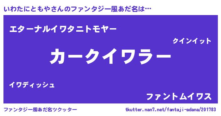 | 男性向けラノベタイトル風あだ名 | 『うちのいわたにともやが世界を掌握している!』 |