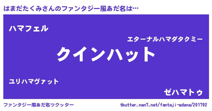 | 男性向けラノベタイトル風あだ名 | 『はまだたくみに滅ぼされるだけの簡単なお仕事です』 |