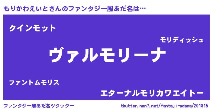 | 男性向けラノベタイトル風あだ名 | 『この素晴らしい世界にもりかわえいとを!』 |