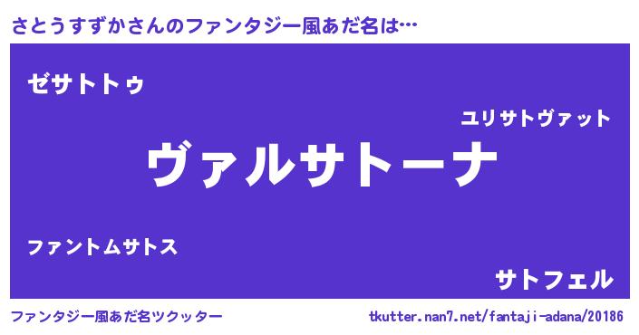 | ヒーロー風カッコイイあだ名 | 『仮面サトダー』『最強戦士サトウスズカ』 |