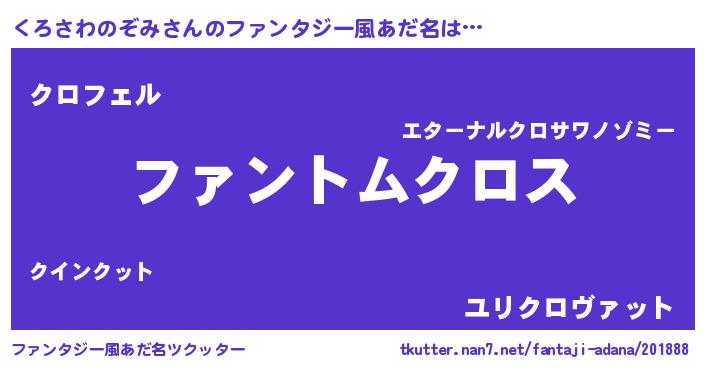 | 男性向けラノベタイトル風あだ名 | 『くろさわのぞみに滅ぼされるだけの簡単なお仕事です』 |