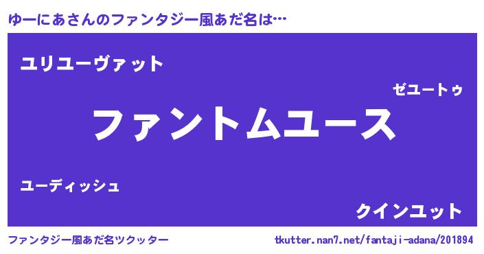 | 男性向けラノベタイトル風あだ名 | 『ダンジョンにゆーにあを求めるのは間違っているだろうか』 |