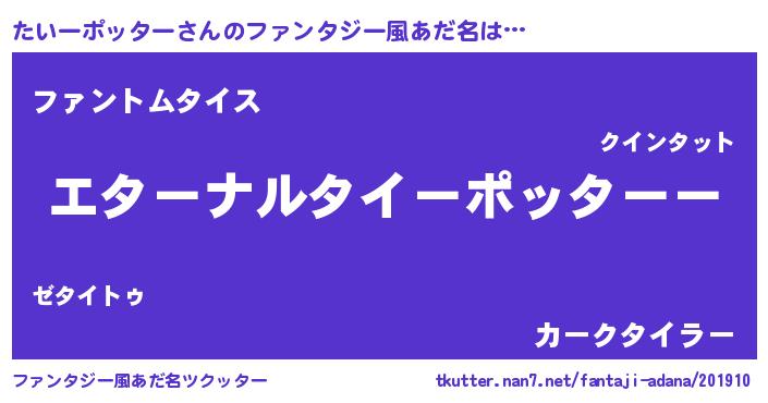 | 意味不明あだ名 | 『たいーポッターフォーエバー』 |