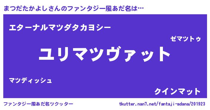 | 男性向けラノベタイトル風あだ名 | 『まつだたかよしに滅ぼされるだけの簡単なお仕事です』 |