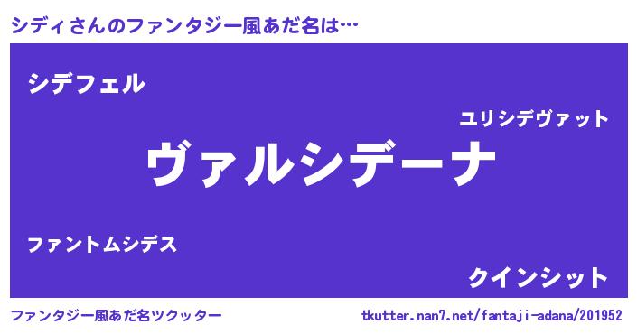 | 男性向けラノベタイトル風あだ名 | 『魔弾の王とシディ』『シディの憂鬱』 |