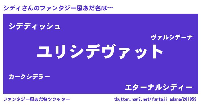 | 男性向けラノベタイトル風あだ名 | 『転生したらシディだった件』 |