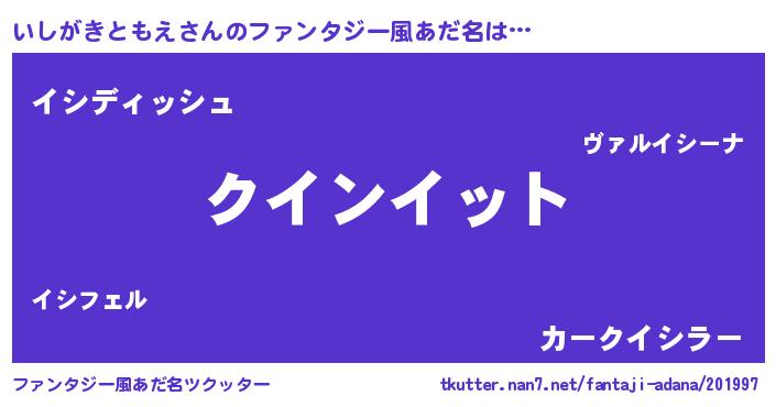 | ヘコむあだ名 | 『いしがきともえ(小並感)』『いしっふぃ~』 |