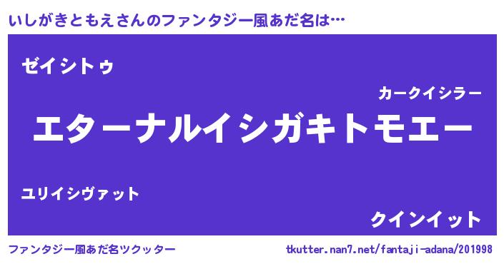 | 肩書あだ名 | 『いしがきともえ国家主席』 |