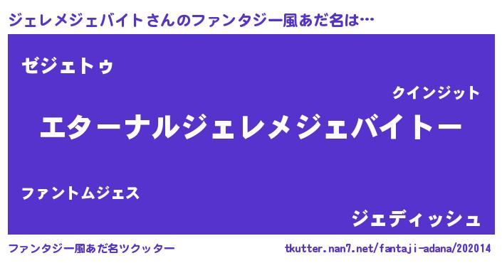 ジェレメジェバイトさんのファンタジー風あだ名をツクッター!