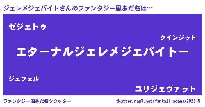 | 欧米人風あだ名 | 『ジェレメジェバイトクリステル』 |