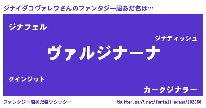 | 男性向けラノベタイトル風あだ名 | 『この素晴らしい世界にジナイダコヴァレワを!』 |