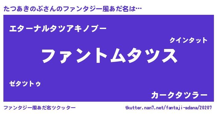 | 胡散臭い通販商品みたいなあだ名 | 『信頼と実績のペンダント…その名も「たつあきのぶ」』 |
