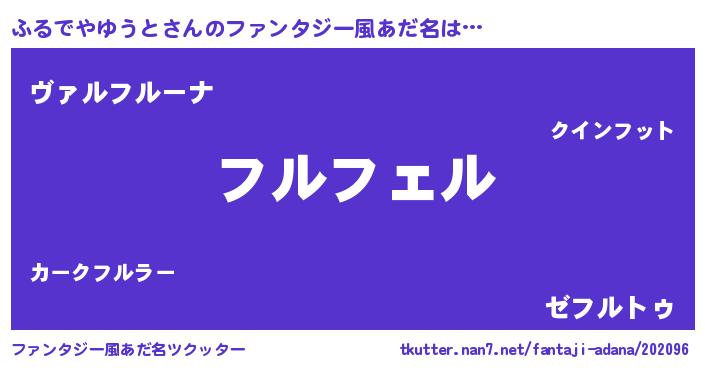| 男性向けラノベタイトル風あだ名 | 『フルデヤユウトアートオンライン』 |