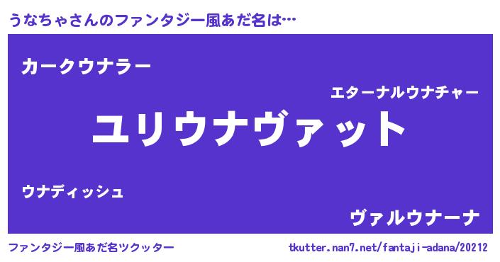| 男性向けラノベタイトル風あだ名 | 『転生したらうなちゃだった件』 |