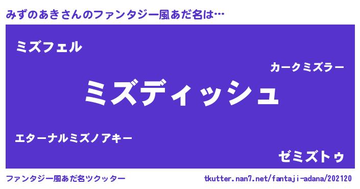 | 意味不明あだ名 | 『永久保存みずのあき』『自称みずのあき』 |