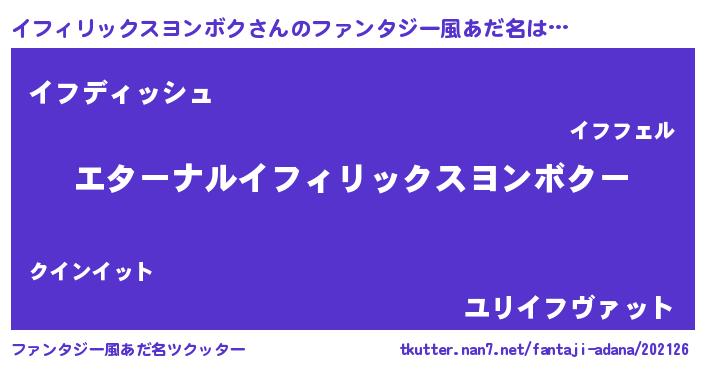 | 意味不明あだ名 | 『イフィリックスヨンボクフォーエバー』 |