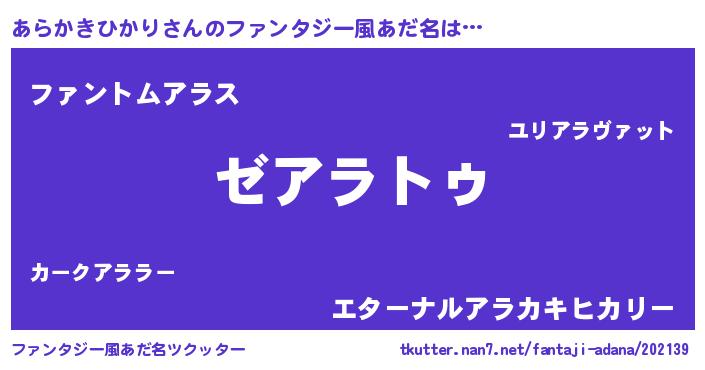 | 意味不明あだ名 | 『自称あらかきひかり』 |