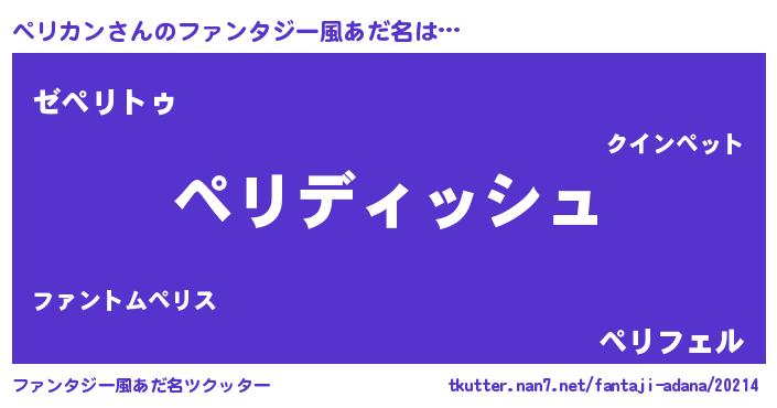| 男性向けラノベタイトル風あだ名 | 『ペリカンという概念が存在しない退屈な世界 』 |