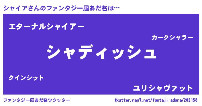 | 意味不明あだ名 | 『永久保存シャイア』『ペロリンシャイア』 |