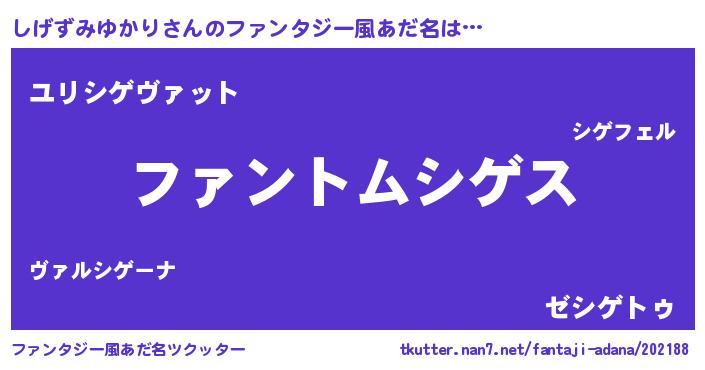 | 意味不明あだ名 | 『とにかく怪しいしげずみゆかり』 |