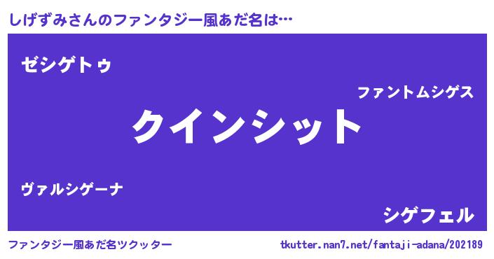 | 男性向けラノベタイトル風あだ名 | 『おまえをオタクにしてやるから、俺をしげずみにしてくれ! 』 |