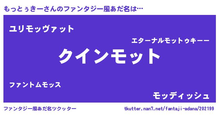 | 自動車の名前っぽいあだ名 | 『モンR』『モールスッイス』『モクア』 |