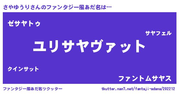 | 男性向けラノベタイトル風あだ名 | 『サヤユウリスレイヤー』 |