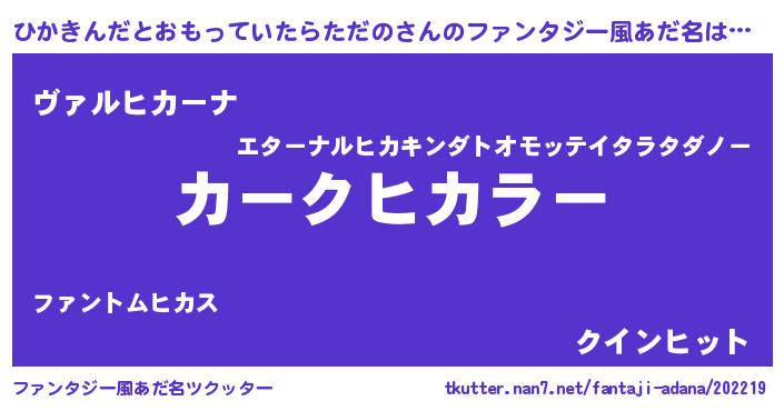 | 胡散臭い通販商品みたいなあだ名 | 『世界中を虜にした世界で10本だけ現存している希少なブランデー…その名も「ひかきんだとおもっていたらただの」』 |