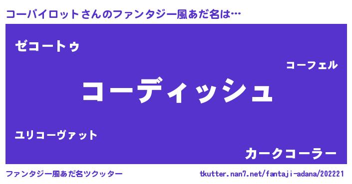 | 胡散臭い通販商品みたいなあだ名 | 『来世でも幸せになれる健康食品…その名も「コーパイロット」』 |