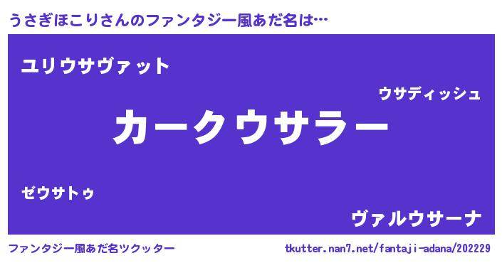 | ヒーロー風カッコイイあだ名 | 『仮面ウサダー』『ネオウサギホコリ』 |