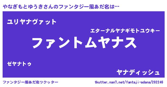 | ポケモン風あだ名 | 『ヒヤナギモトユウキ』『ヤナゴンZ』 |