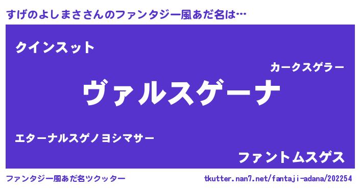 | 女子向けラノベタイトル風あだ名 | 『悪役すげのよしまさに転生したようですが、知った事ではありません』 |
