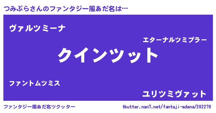 | 女子向けラノベタイトル風あだ名 | 『つみぷら恋絵巻』『つみぷらの婚約者』 |