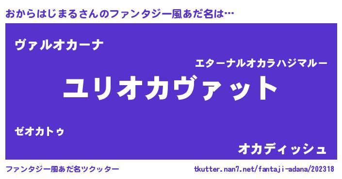 | 伝説のあだ名 | 『古より伝わる吟遊詩人おからはじまる』 |