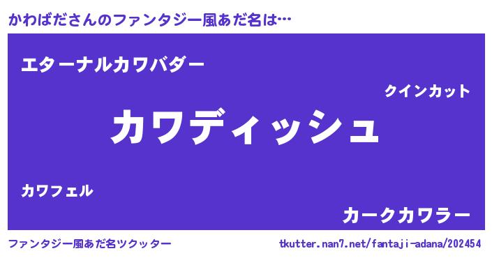 | ポケモン風あだ名 | 『カワゴンZ』『ゼニカワ』 |
