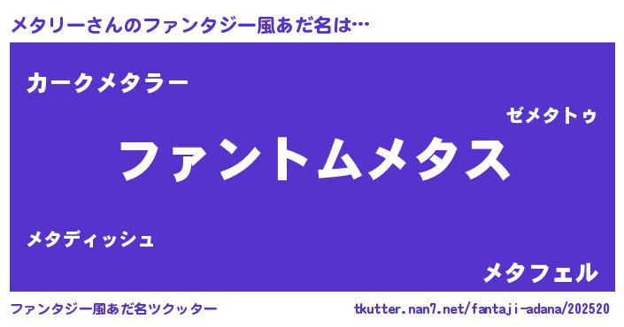 | 意味不明あだ名 | 『とにかく怪しいメタリー』 |
