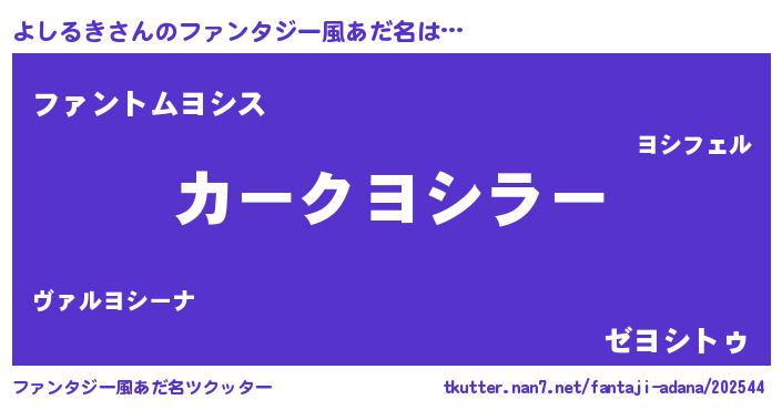 | 欧米人風あだ名 | 『よしるき・ステッグマイヤー』 |