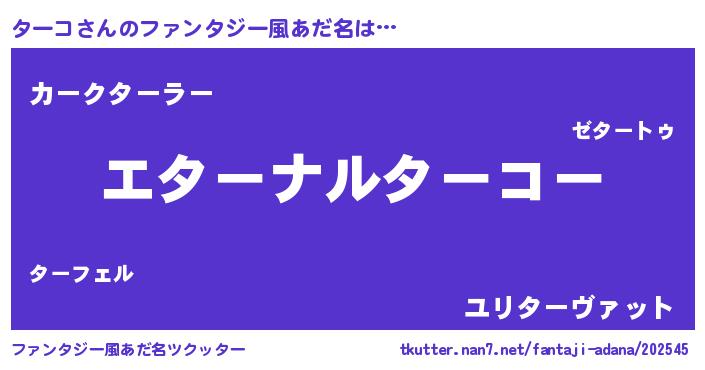 | 意味不明あだ名 | 『ターコフォーエバー』『自称ターコ』 |