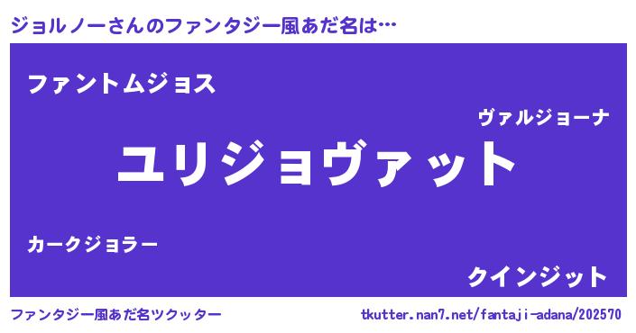 | 男性向けラノベタイトル風あだ名 | 『転生したらジョルノーだった件』 |
