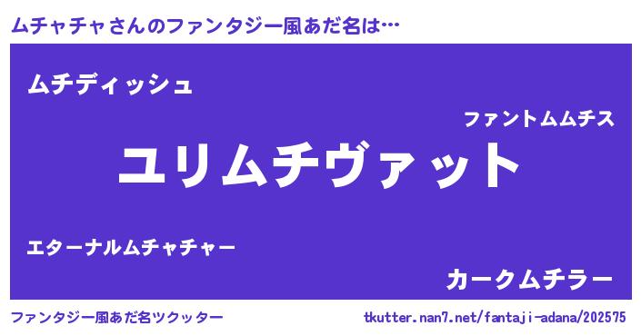 | 男性向けラノベタイトル風あだ名 | 『ムチャチャ~年齢イコール彼女いない歴の魔法使い~』 |