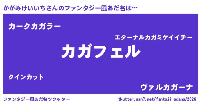 | 自動車の名前っぽいあだ名 | 『カガティマ』『フェカーガ』 |