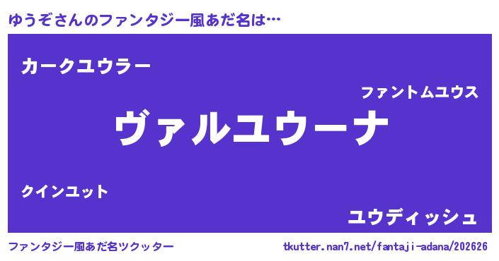 | ヘコむあだ名 | 『ゆうぞ(震え声)』『ゆうぷりん』 |